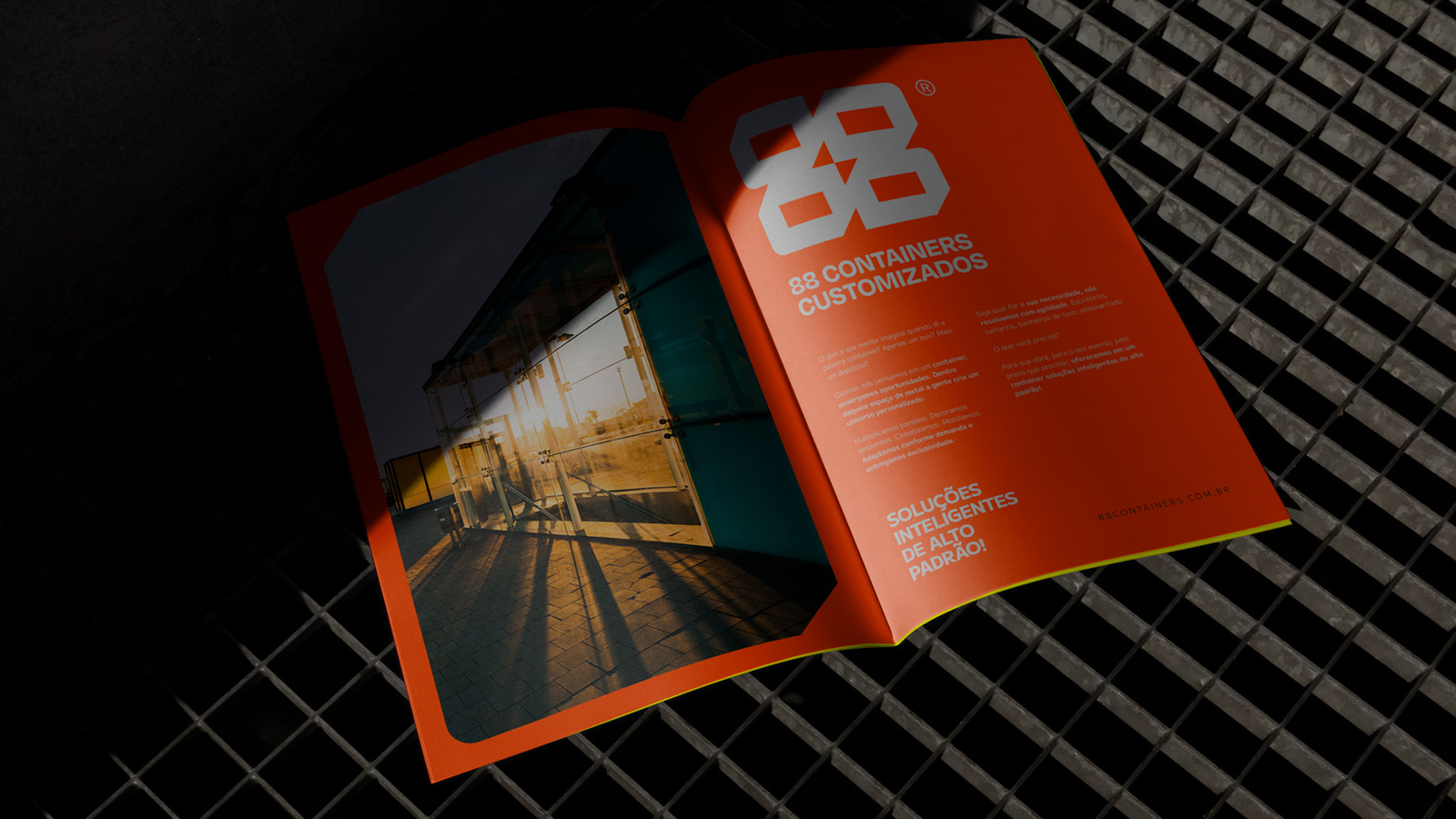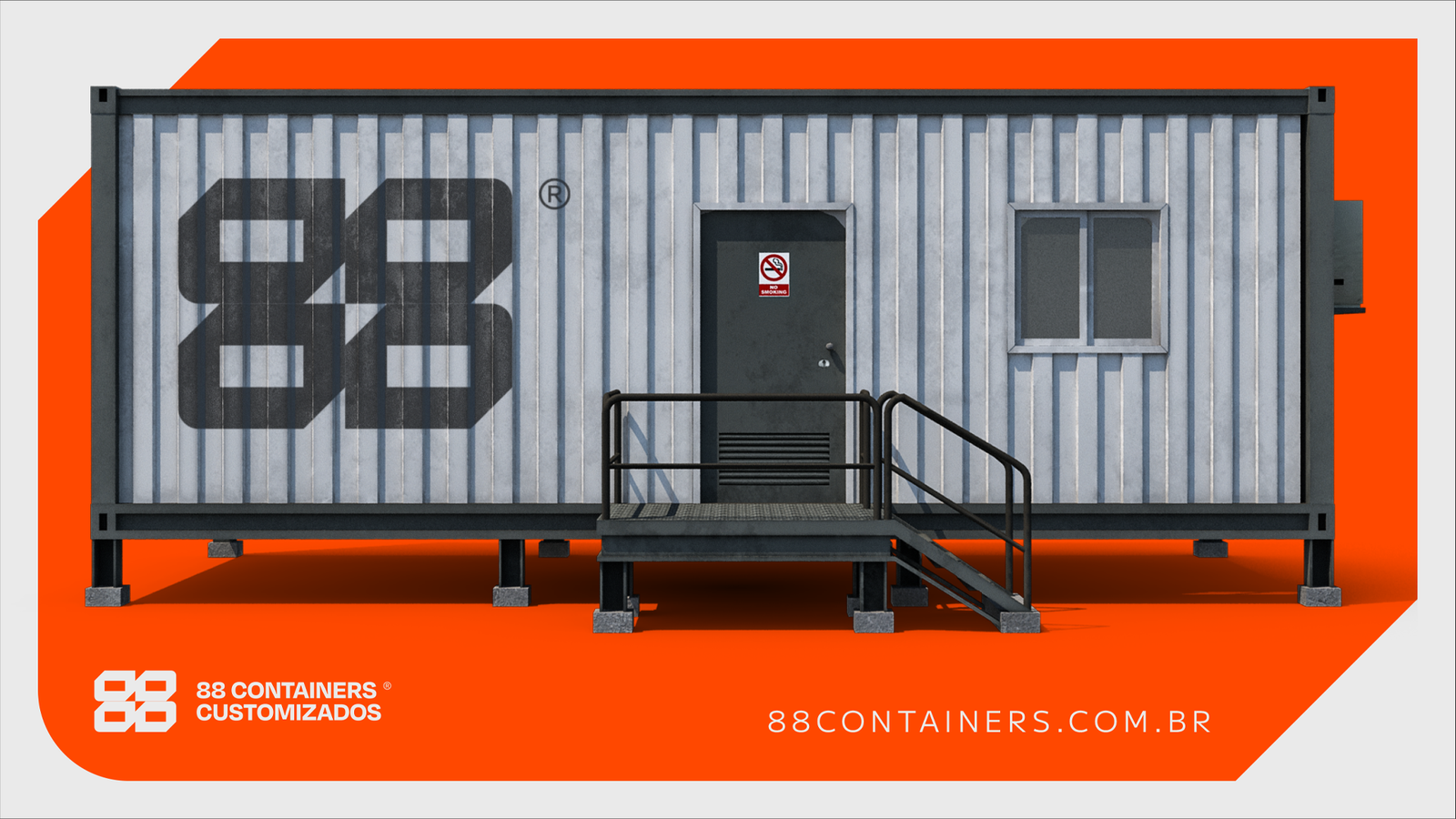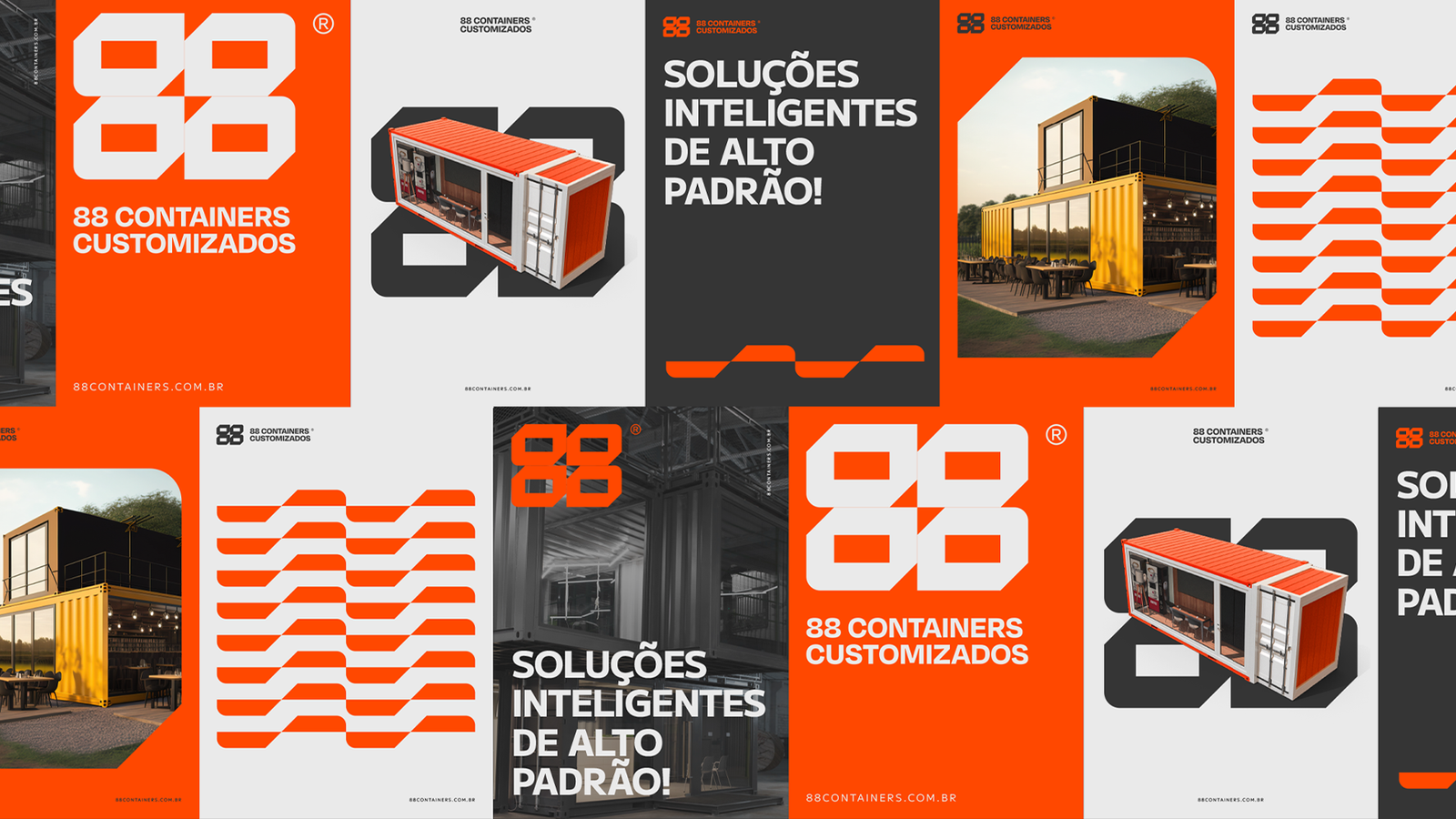A 88 Containers Customizados é uma empresa especializada no desenvolvimento de espaços personalizados em containers. Sua estratégia comunicativa, apoiada na tagline, cria a conexão entre a necessidade da elaboração de espaços customizáveis e a agilidade na entrega de uma solução prática, funcional e sustentável.